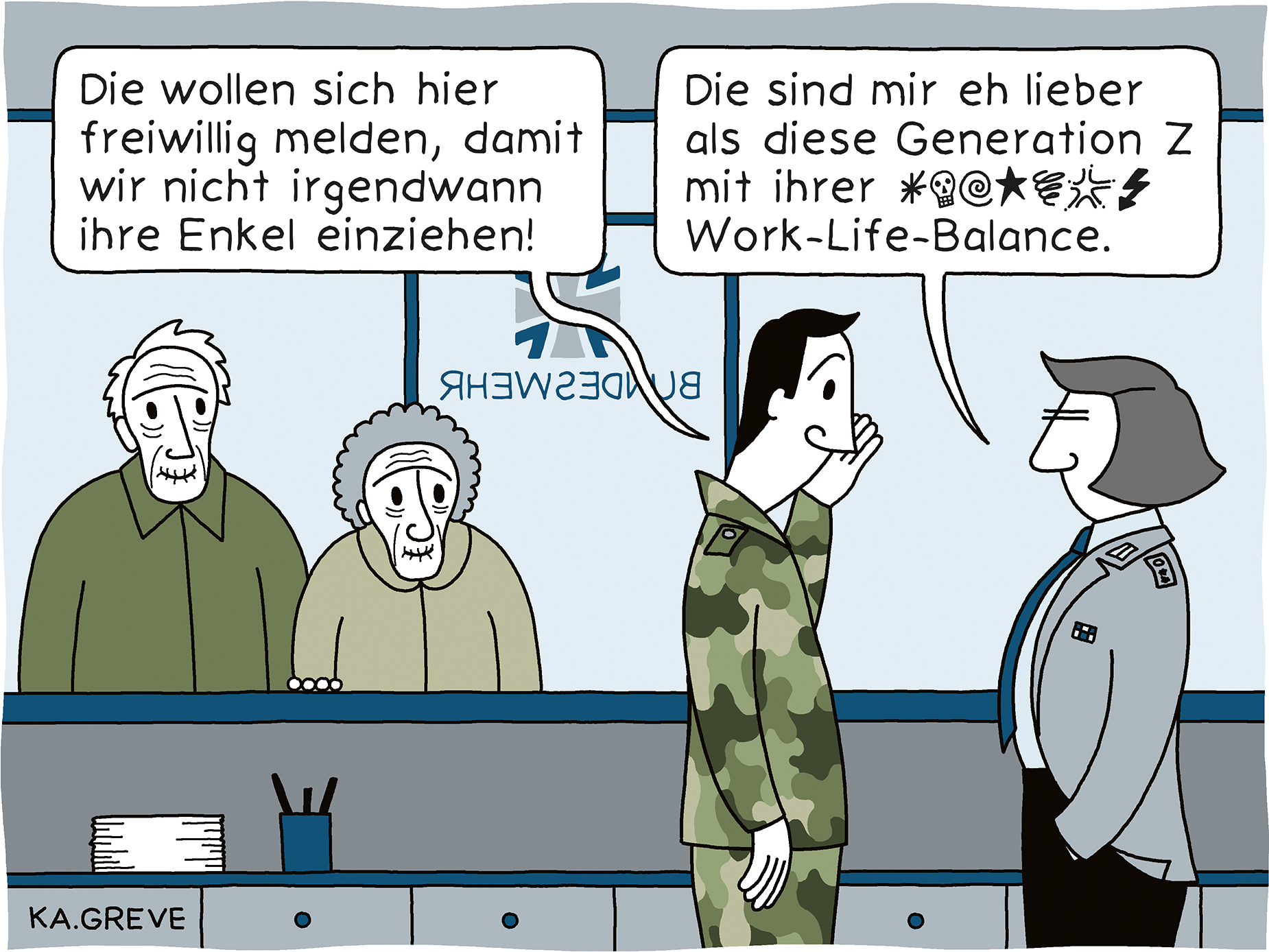 Wehrpflicht wieder einführen oder nicht? In unserer SPOTLIGHT Cartoon-Arena fangen eine Woche lang renommierte Cartoonistinnen und Karikaturisten die Debatte humorig ein. Nun können Sie Ihren Favoriten wählen.