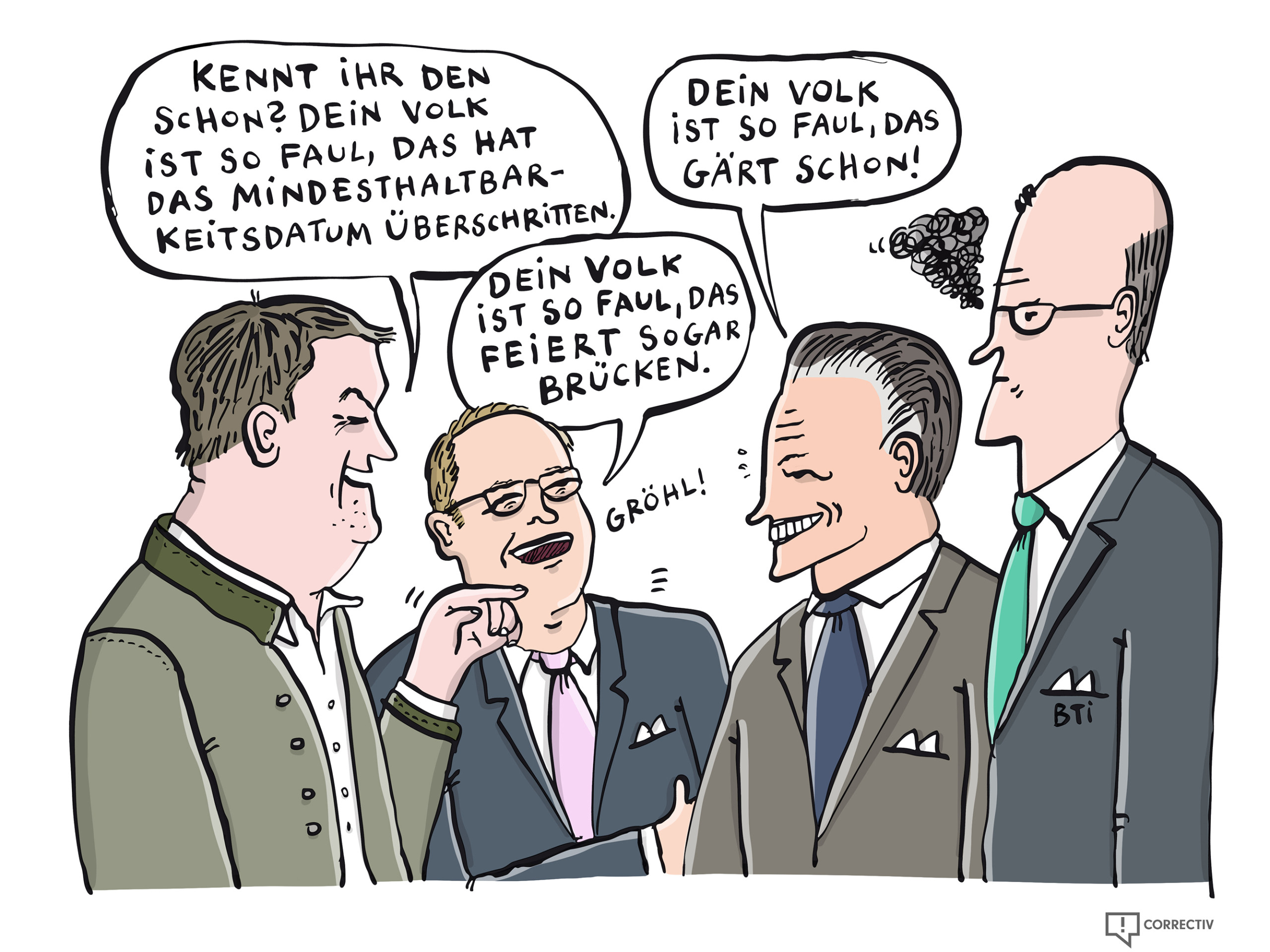 Hier sehen Sie noch einmal alle Cartoons dieser Woche. Abstimmen können Sie in unserem CrowdNewsRoom.