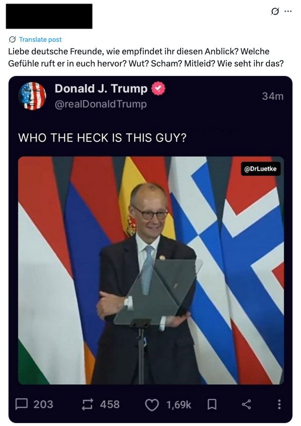 „Wer ist dieser Typ?“: Viraler Trump-Beitrag über Merz ist nicht echt