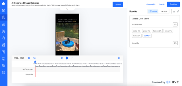 Wir haben das Video mit dem Online-Tool Hive Moderation untersucht. Das Tool gibt bei einer solchen Analyse die Wahrscheinlichkeit an, dass ein Video mit Künstlicher Intelligenz generiert oder bearbeitet wurde. In diesem Fall lag die Wahrscheinlichkeit laut Hive Moderation bei 0 Prozent. Das spricht dafür, dass es sich um eine authentische Aufnahme handelt, beweist dies jedoch nicht abschließend.