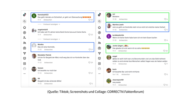Ein Video zeigt Friedrich Merz in verschiedenen Szenen: im Bundestag, bei einer Podiumsdiskussion, in einem Interview. Darüber prangen Schriftzüge wie „Ab 01.12.2025 Bargeld verboten“, „Nur Karte“ und „Digitale Fessel“. Der Zusammenschnitt erweckt den Eindruck, Merz habe ein umfassendes Bargeldverbot angekündigt, das den Zahlungsverkehr in Deutschland grundlegend umkrempeln werde. In den Kommentaren reagieren Nutzerinnen und Nutzer unterschiedlich: Einige wirken verunsichert oder alarmiert, sehen darin einen Beweis für staatliche Überwachung und Kontrolle. Andere zweifeln und schreiben schlicht: „Blödsinn“.