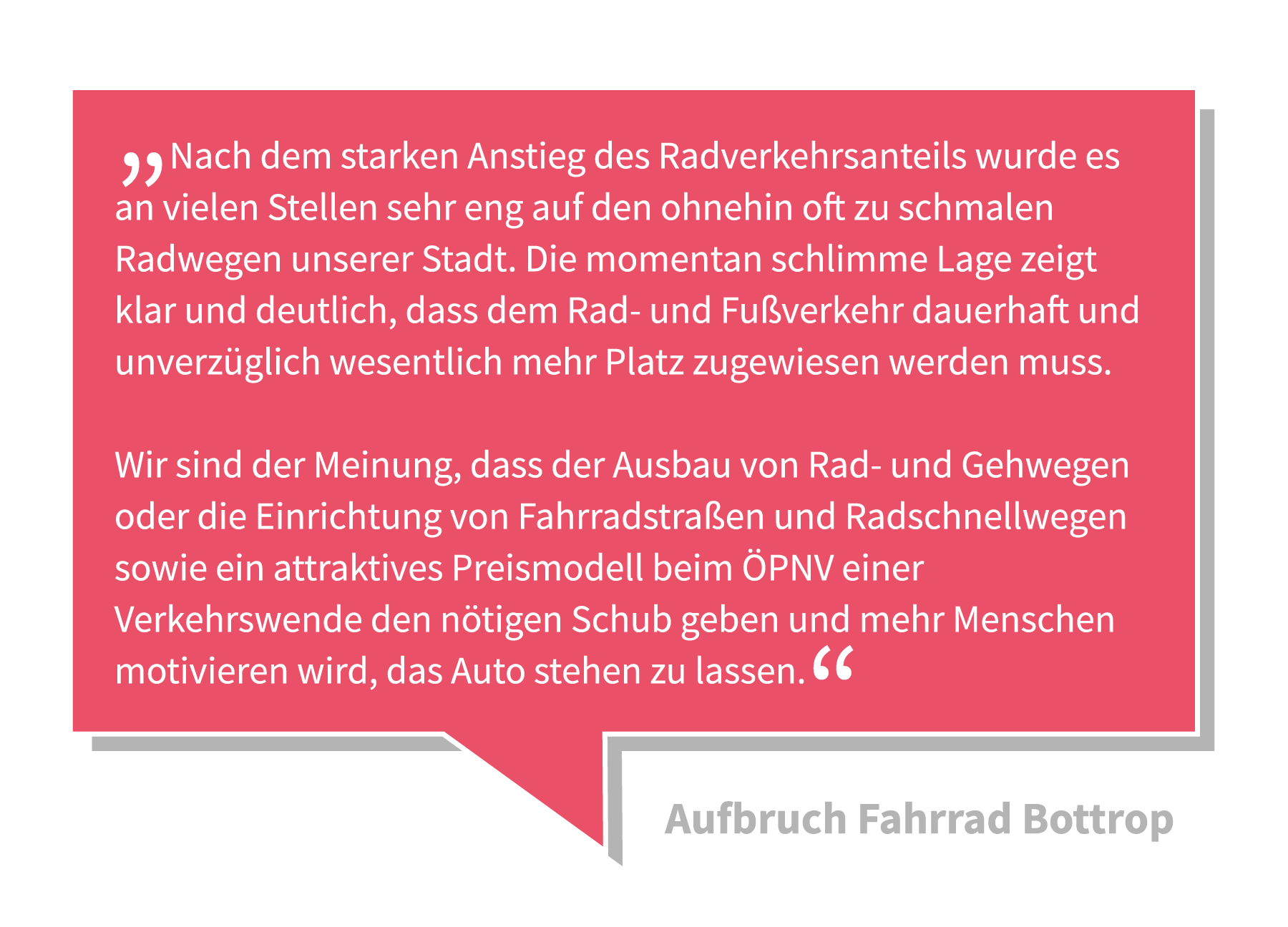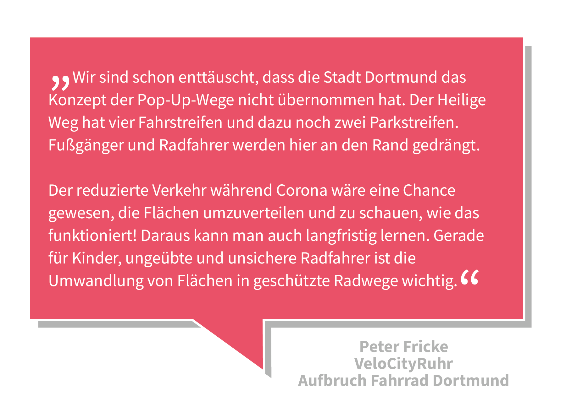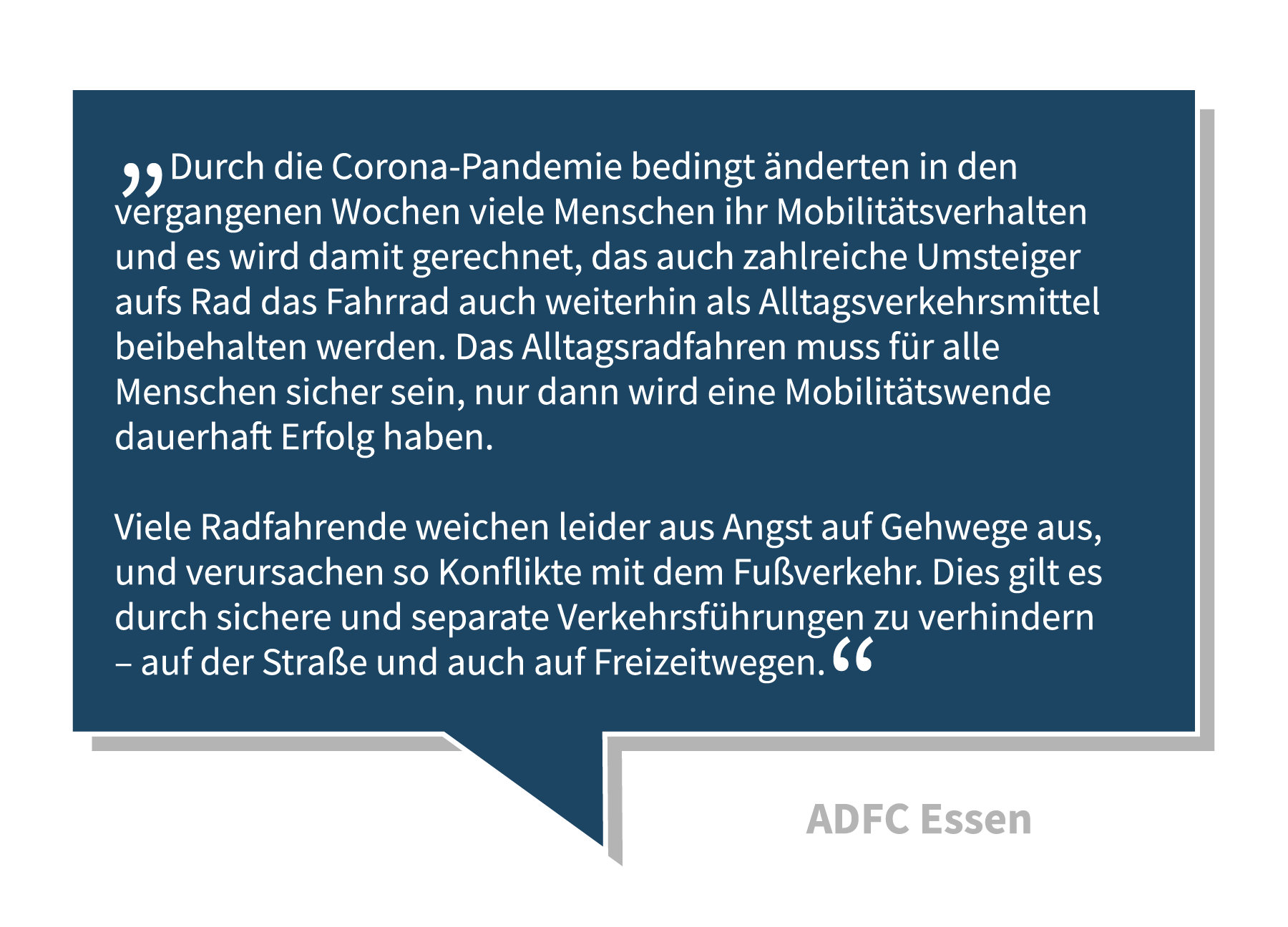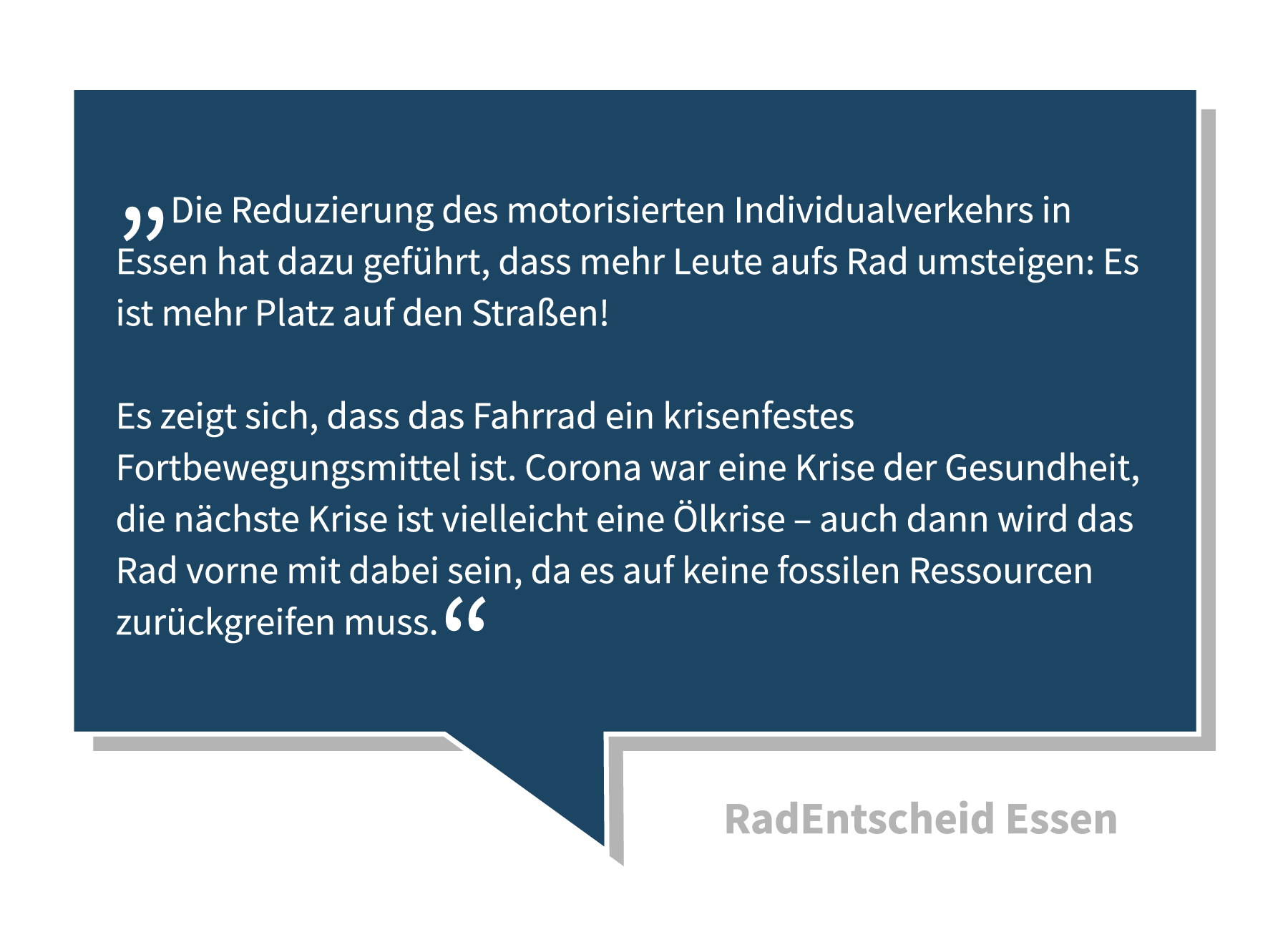 Wir haben lokale Mobilitätsinitiativen aus dem Ruhrgebiet gefragt, wie sie die Aus- und Nachwirkungen der verkehrsberuhigten Zeit auf den Verkehr einschätzen – und was ihrer Ansicht nach der wichtigste Schritt hin zu einer nachhaltigen Mobilität ist.