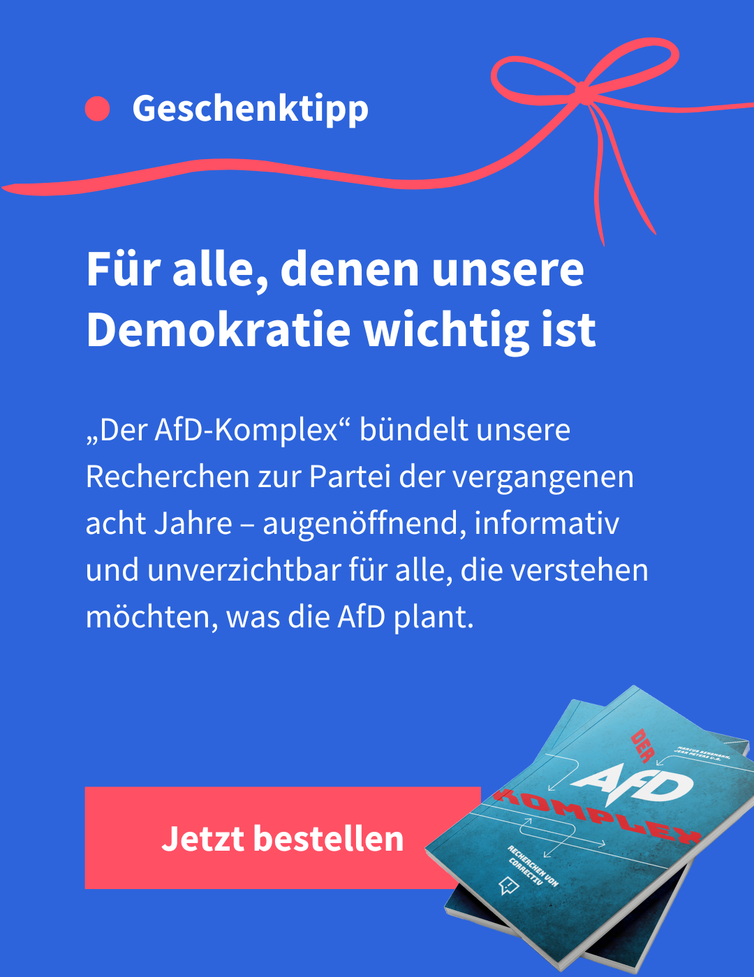 Und dann noch ein Hinweis in eigener Sache – falls Sie noch ein Weihnachtsgeschenk suchen und vielleicht eine Spende an CORRECTIV verschenken möchten: Hier entlang.