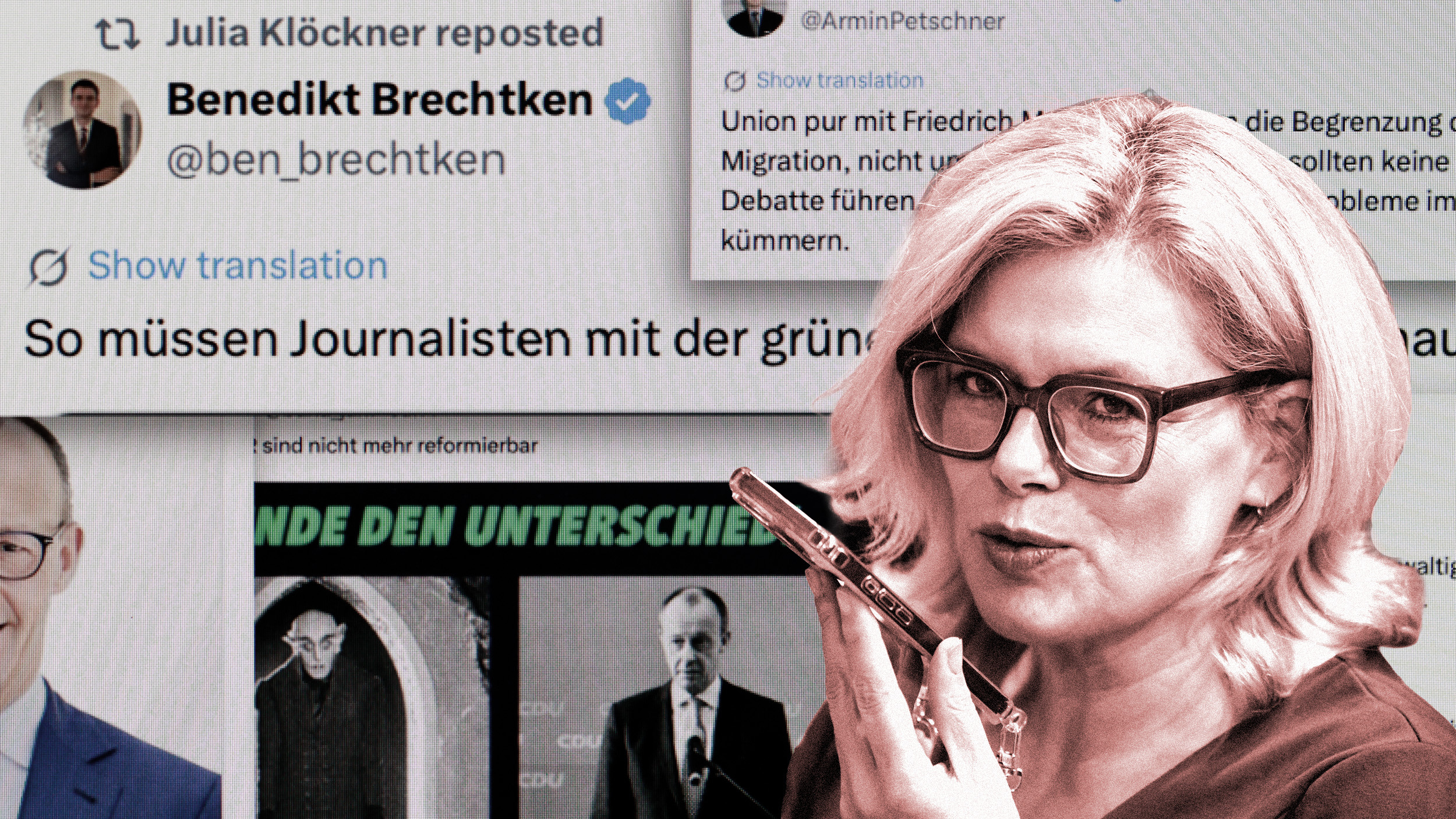 So finden sich unter den rund 1.200 Posts, die Klöckner zwischen November 2024 und März 2025 verfasst oder verbreitet hat, mehr als 80 Beiträge von Medien wie Apollo News, von Nius-Reportern oder von anderen rechtskonservativen bis rechtspopulistischen Konten.