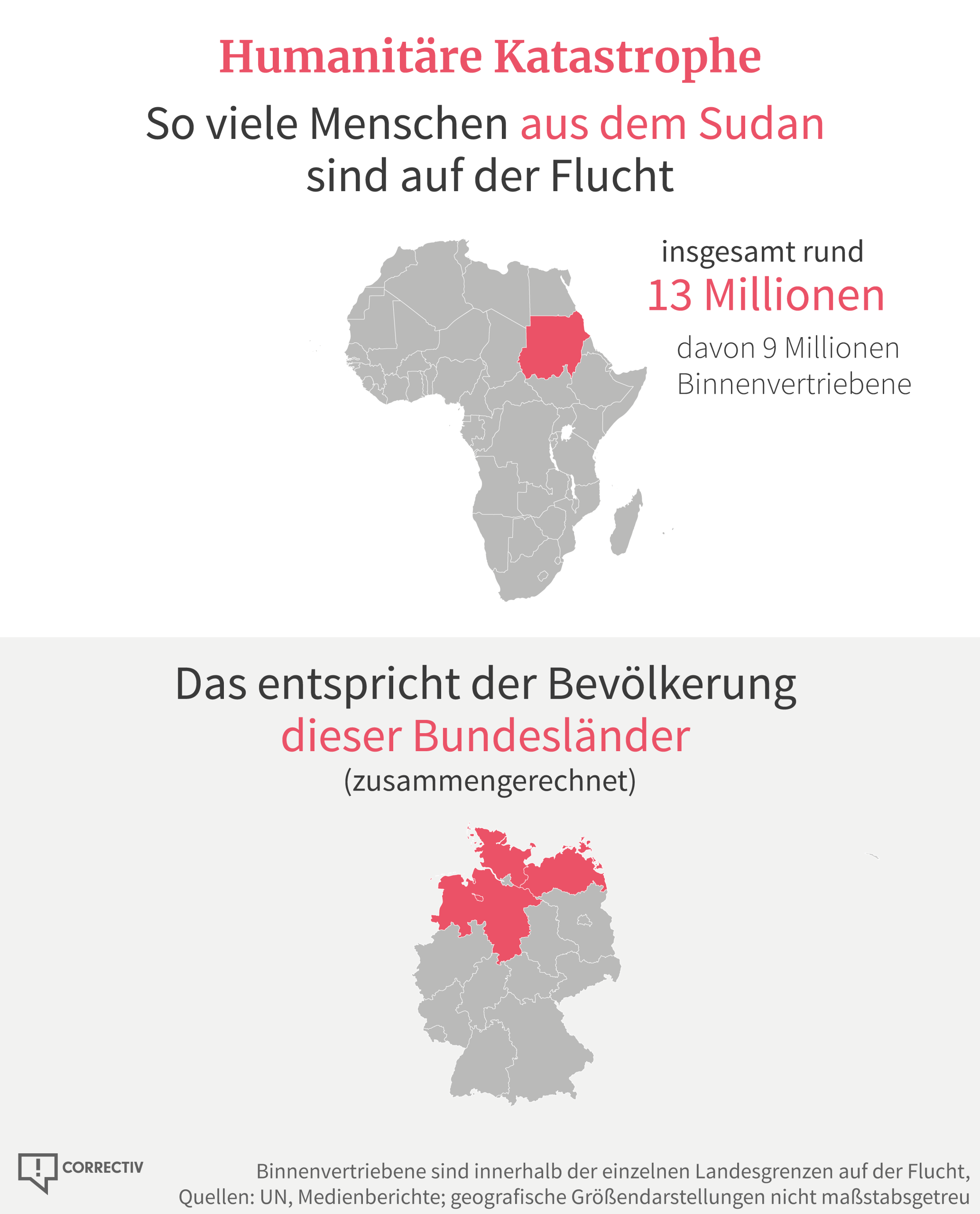 Die Situation im Sudan gilt als die größte „vergessene Krise“ unserer Zeit. Während der Krieg dort tobt, leiden Millionen Menschen an Hunger und sind auf der Flucht. Die Grafik des Tages setzt die blanken Zahlen einmal ins Verhältnis.