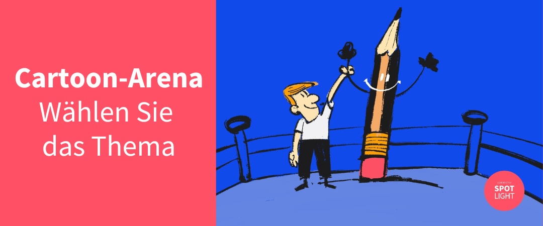 Und jetzt benötigen wir wieder Ihre Stimme – für die nächste Runde der Cartoon-Arena! Was das nochmal ist und weshalb wir es machen? Das steht hier. Sie können jetzt für das Thema abstimmen, bei dem unsere Karikaturistinnen und Karikaturisten demnächst mit spitzem Stift gegeneinander antreten. Zur Auswahl stehen diesmal diese Themen: