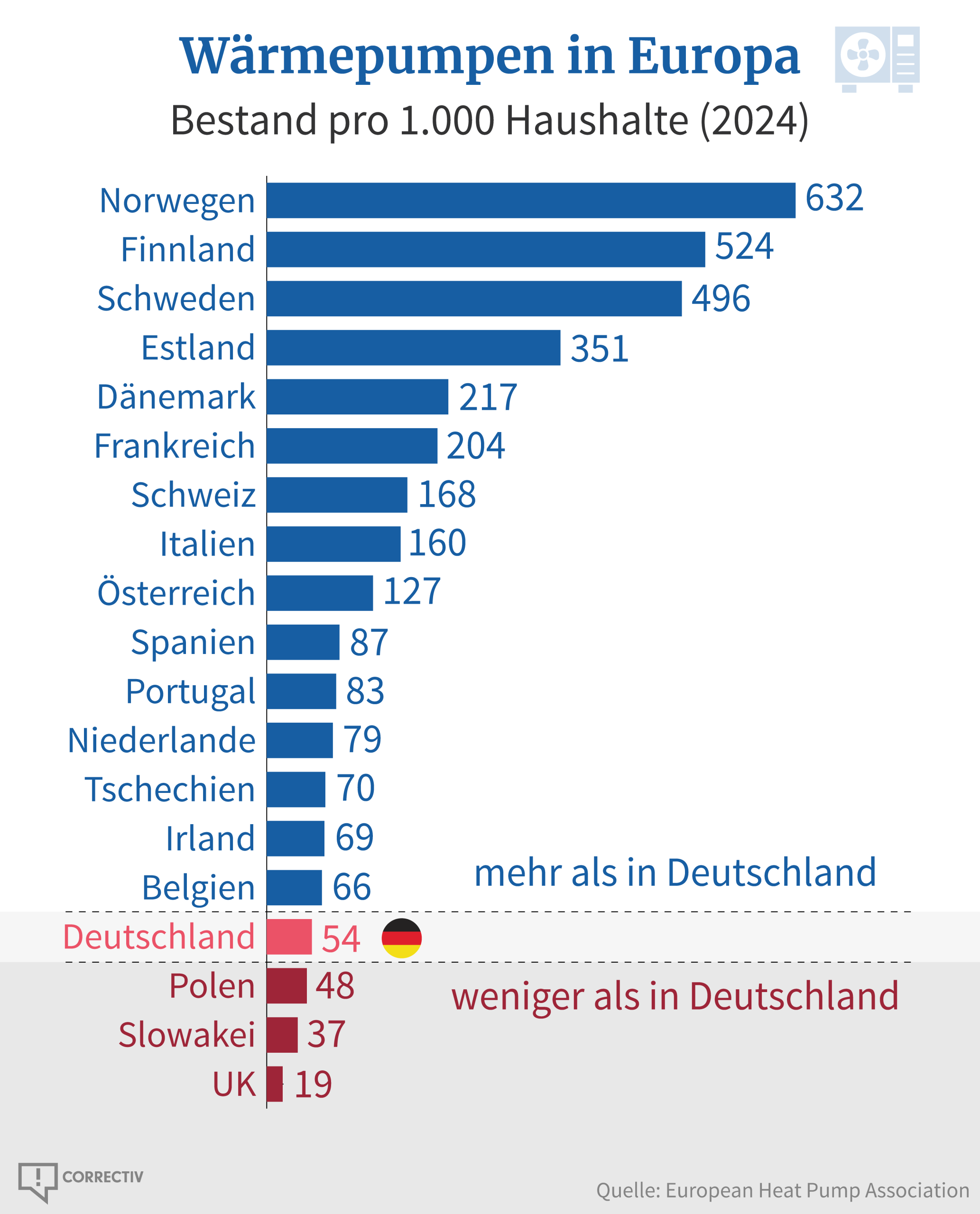 Grafik des Tages: Wärmewende – so weit hängt Deutschland zurück