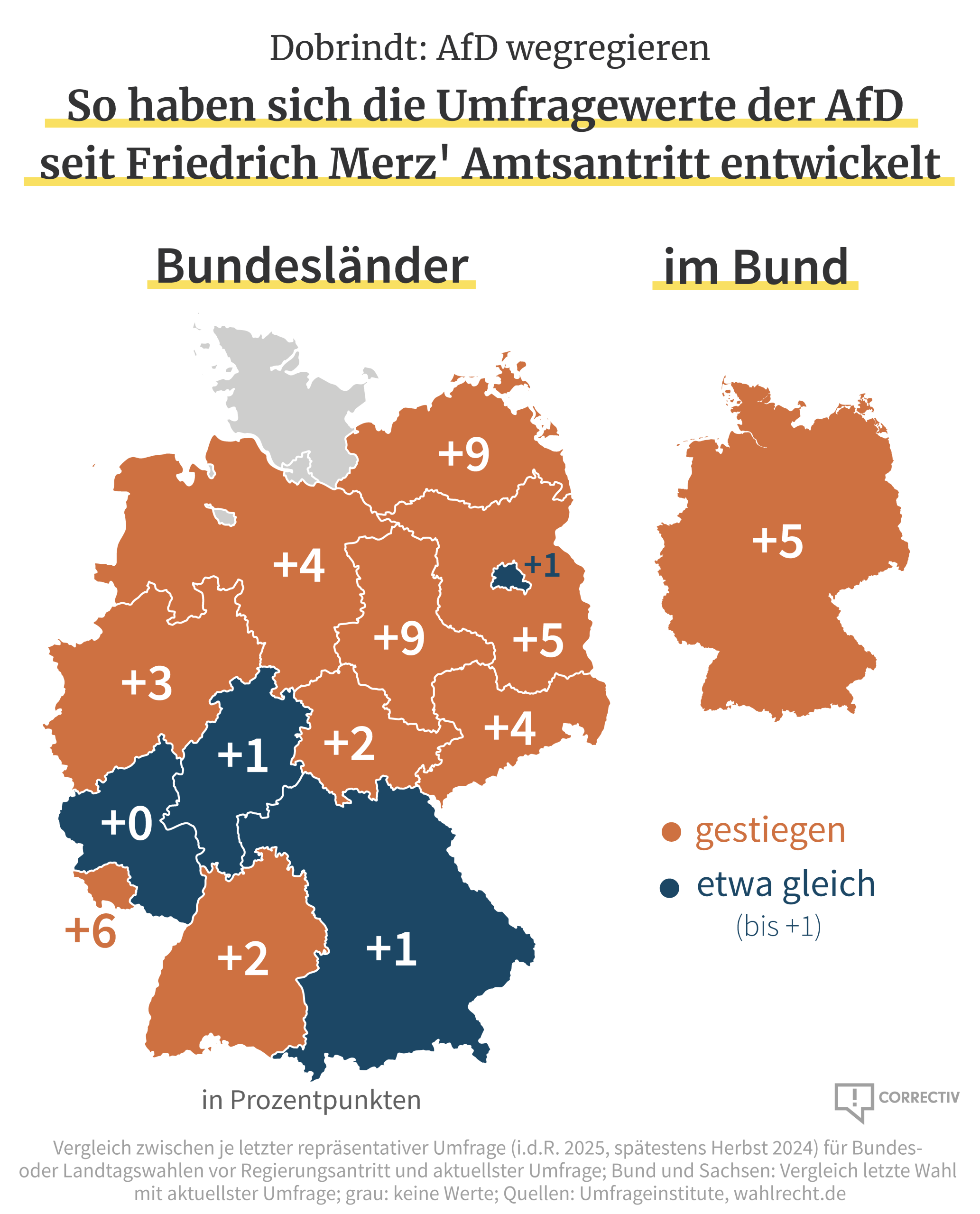 In der Grafik des Tages: Innenminister Dobrindt wollte die AfD „wegregieren“. Wie sieht’s aus?