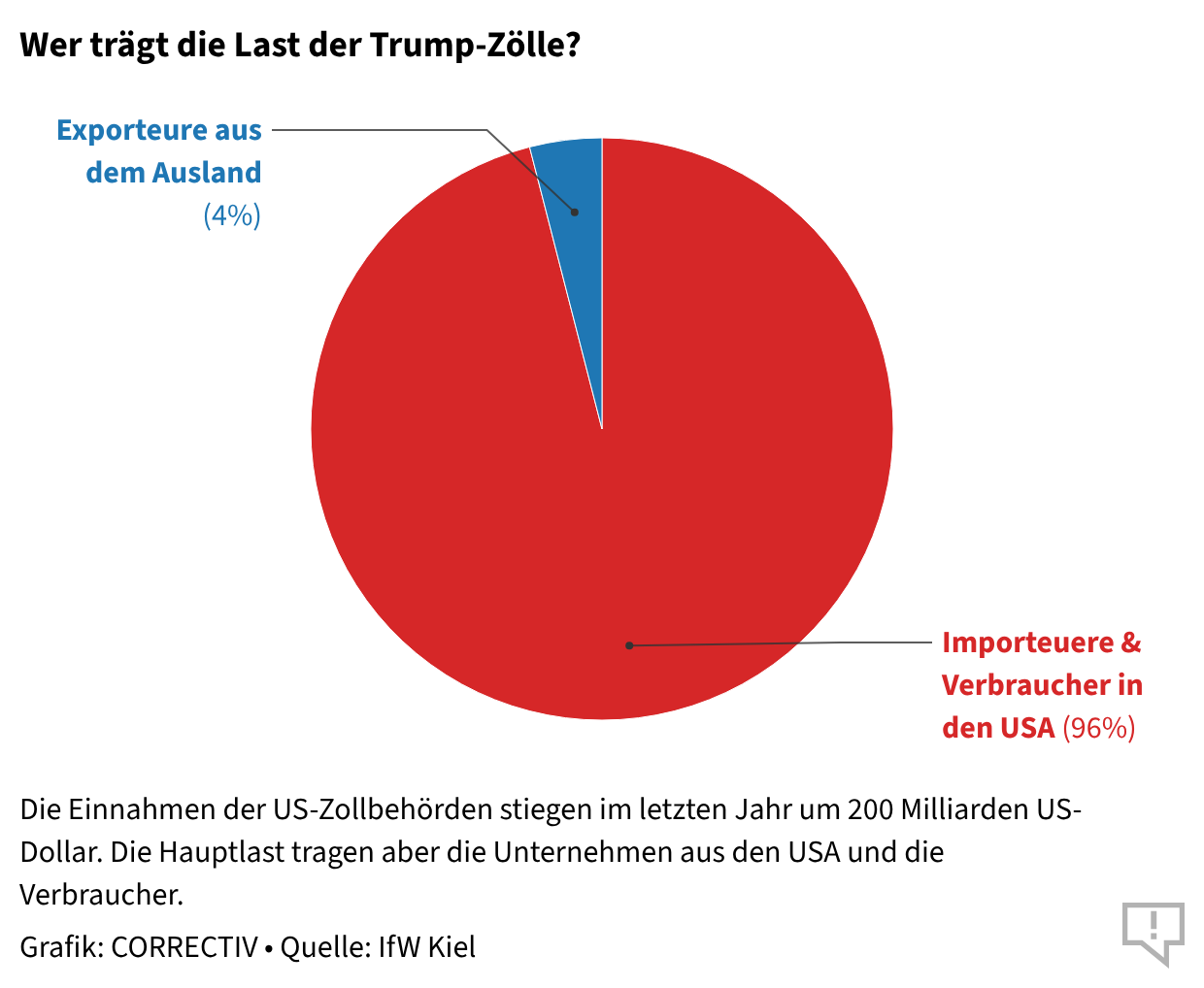 Doch die unmittelbaren Kosten für die Zölle tragen die Vereinigten Staaten selbst. Für die rund 200 Milliarden US-Dollar an Mehreinnahmen der US-Zollbehörde mussten vor allem Verbraucher und Importeure in den USA in die Tasche greifen. Verteuerte Produkte, weniger Auswahl: „Die Zölle sind ein Eigentor“, fasst IfW-Forschungsdirektor und Mitautor der Studie Julian Hinz zusammen.